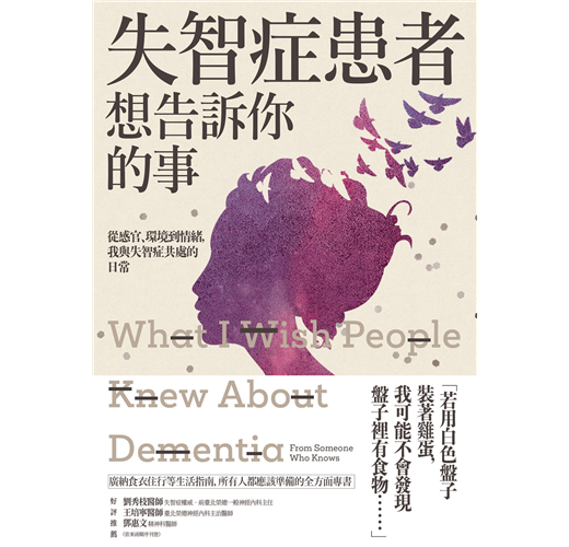 「這本書透過作者親身的真摯敍述,將失智者的經歷帶到了我們眼前,使讀者自然的體會到失智不僅僅是記憶的喪失,更造成了感官和環境適應能力的改變。這些變化不僅身旁的人難以理解,他們本身也感到困惑。這本書不僅讓我重新省思對失智者的了解,更讓我欽佩失智者的勇氣和堅韌。」