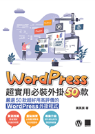 隨著 WordPress 系統架站在企業、教學單位、品牌間廣泛的使用,預設的功能已經很強大。但若是要做到更符合網站功能需求時,往往得要安裝外掛才能達成。然而安裝外掛往往會是兩面刃,有時候因升級問題無法匹配系統就會造成系統的崩潰、錯誤,或是有程式漏洞遭到木馬攻擊——是故選擇外掛,將要慎選。本書推薦 50 款外掛供讀者參考安裝,讓大家在架設網站時能夠節省大量研究外掛的時間!只要你是用 WordPress 架設的網站,本書將會是你不能錯過的一本好書。