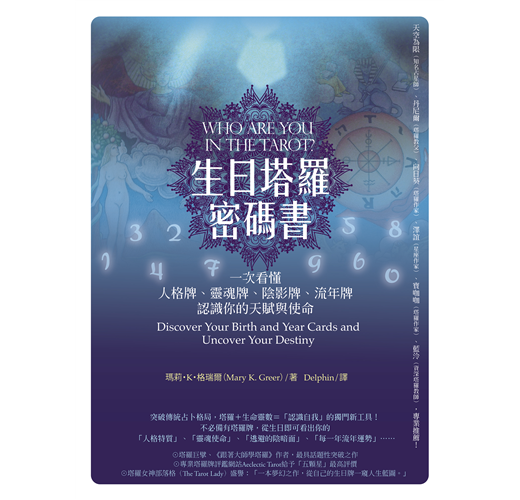 這是截至目前為止,格瑞爾老師最得我心的一本書,因為它幾乎不需要用到塔羅牌,只要你想的話,隨手帶著這一本書參加同學會或好友聚會,馬上就可以拿出來一起同樂,互相討論彼此的人格牌、靈魂牌、流年牌,還可以同場加映,加入你的親朋好友、伴侶、心上人、偶像的生日資料,想從早上討論到天黑都絕對沒問題。