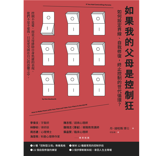 「解開過去之謎,指出是什麼在不知不覺間傷害著我們的親密關係。《如果我的父母是控制狂》幫助我們跨越代溝,達到理解與接納。」