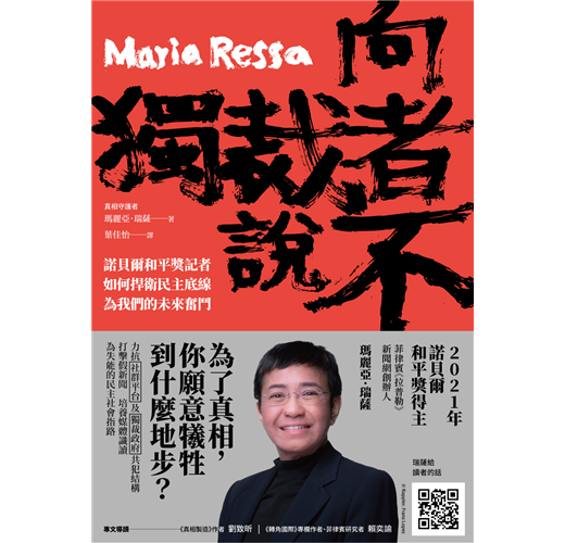 「不必等到諾貝爾和平獎的肯定,瑪麗亞・瑞薩已是一位偉大的新聞工作者,她的勇氣、抉擇、犧牲、洞見與專業,在在都值得我們借鏡與效法,透過本書聽她娓娓道來尤其可貴。看看今日台灣面對的中國與烏克蘭面對的俄羅斯,獨立媒體與新聞自由的重要性再怎麼強調也不為過。本書的書名有如一記警鐘:向獨裁者說不,人類才有未來!」