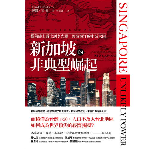 在《新加坡的非典型崛起》一書中,全球海洋史專家約翰.培瑞教授從十四、十五世紀前開始,追尋曾經來過這裡的移民、海盜、商人與征服者的腳步,穿越大航海時代、英國統治、日本占領,直到獨立自治,描述這個擁抱多元民族與來自四面八方的貨物、資金與觀念的小島,如何在華人的經商頭腦與英國人的傑出統治下,發揮海洋優勢,締造在「第三世界的沙漠裡,創造第一世界的綠洲」的理想。