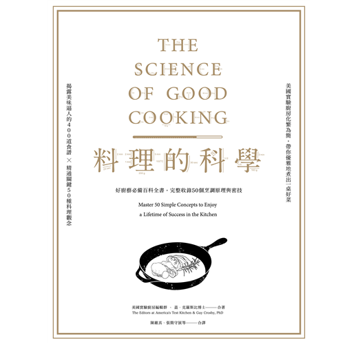 「料理是藝術,也是科學,此書以簡單易懂的科學原理,實際測試並應證料理的美味細節,只要掌握這些實用的關鍵技巧,在自家廚房裡也能輕鬆烹調出極致美味!」
