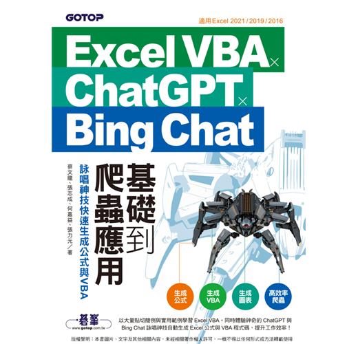 Excel VBA×ChatGPT×Bing Chat基礎到爬蟲應用:詠唱神技快速生成公式與VBA(電子書)
