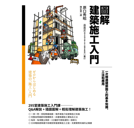 全書295個單元,一頁一Q&A,含括最入門至較深入的內容,簡潔易懂的文字,清晰的圖解和精準的漫畫,引導讀者將紙上的學問連結至實務面,全盤概略了解建築施工的基本事項,並據以應用於施工現場。