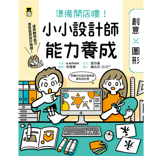 《準備開店嘍!小小店長能力養成:商業╳計算》以便利商店的營業內容為背景,真實的生活情境為題材,導入數學中的四則、代數、甚至是統計的實際應用面。讓孩子切確明白數學在生活中、工作中的重要。而另一本《準備開店嘍!小小設計師能力養成:創意╳圖形》中,孩子不但能學習到幾何圖形的各項特性,還能運用圖形的對稱、組合與文字結合創造出精采的Logo,進而學會幾何的基本性質,更增長了孩子的創造力。這是一套真正全素養導向、也是個能讓孩子學到帶得走的能力的實用好書。——鍾元杰(桃園市東興國中數理資優班數學科教師)