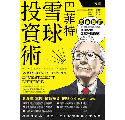 身為一個長期追蹤巴菲特動態的鐵粉,本書的監修者──日本大學商學院的教授濱本先生,更與資深漫畫家合作,將巴菲特傳承自葛拉漢及菲利浦‧費雪的價值投資核心概念,轉化為易於理解、消化與依循的圖解形式。