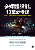 本書除了多媒體的各項知識外,也強調軟體實作,並以多樣化的範例來進行講解,影像處理設計、視訊剪輯製作、3D 動畫實務、網站設計、數位學習…等,都能提升讀者對多媒體創作的興趣,同時引導讀者將所學會的相關技巧,應用到生活化的創作之中。