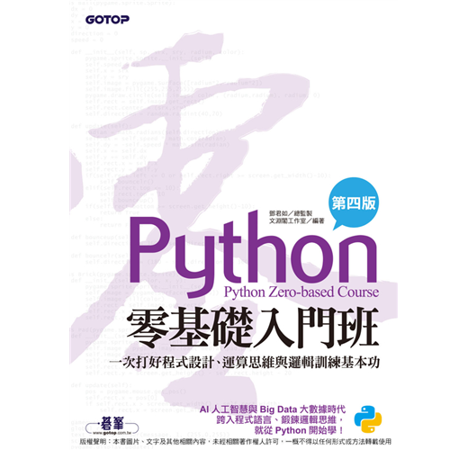 Python零基礎入門班(第四版):一次打好程式設計、運算思維與邏輯訓練基本功(電子書)