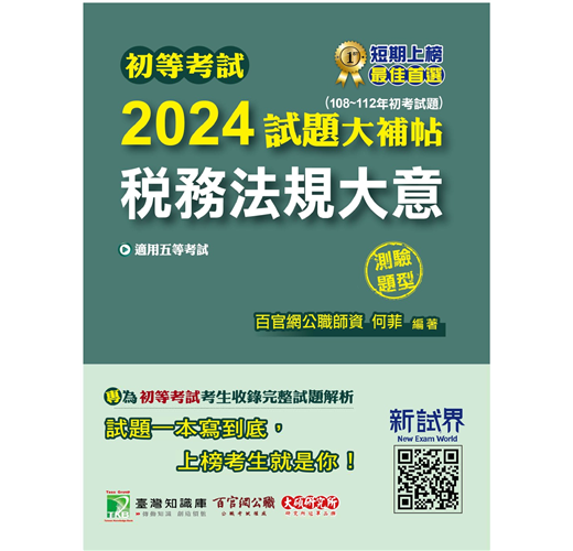 本書收錄初等考試【稅務法規大意】108~112年共五年的測驗試題詳解,幫助您一次準備全面應戰、熟悉題型順利上榜。