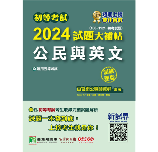 本書收錄初等考試【公民與英文】108~112年共五年的測驗試題詳解,幫助您一次準備全面應戰、熟悉題型順利上榜。