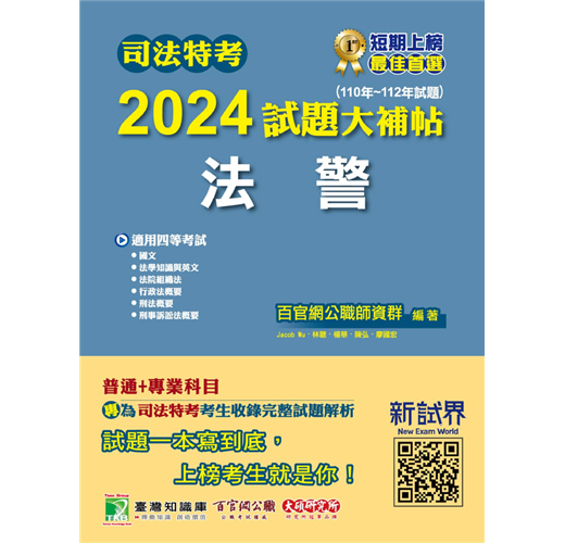 全新【大碩教育2024司法特考試題大補帖】,一本專為考生打造的類科試題書,不論共同或專業科目,備考應戰無煩惱!