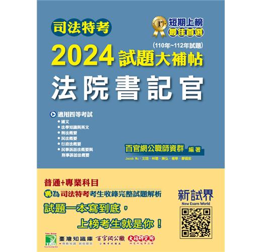 全新【大碩教育2024司法特考試題大補帖】,一本專為考生打造的類科試題書,不論共同或專業科目,備考應戰無煩惱!
