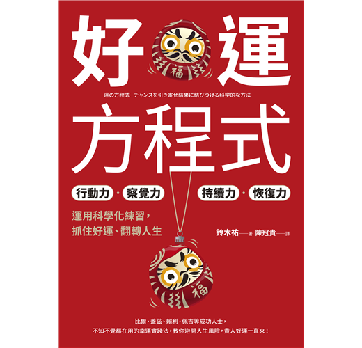 人生就是一場運氣遊戲,如何在這場遊戲裡順利過關斬將?鈴木祐歸結出好運方程式:幸運 =(行動×多樣+察覺)×恢復