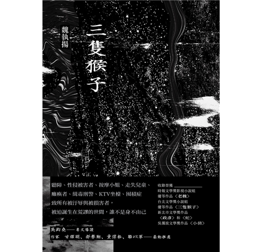 名人推薦:作者運用大量細節、文字填塞,來完成一個倒楣男子的生命史,與囚禁他的一座滲水、發霉的老房子。城市中食之無味、關係的厭乏,用不上發條的無力,令人想起福克納〈William Faulkner〉的《聲音與憤怒》,主角活在全是噪音的環境,女兒卻活在沒有聲音的世界。──駱以軍評〈三隻猴子〉
