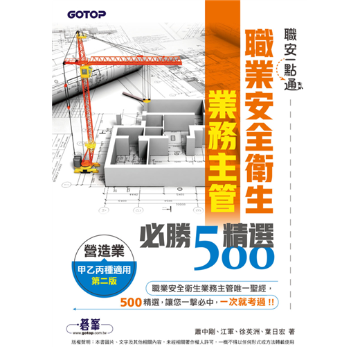 甲乙丙種職業安全衛生業務主管為電腦化測驗,測驗題庫不公開採四選一選擇題,進行電腦上機考試,題目將由電腦連線抽題80題。根據「職業安全衛生教育訓練規則」規定,營造業職業安全衛生業務主管訓練時數為甲種42小時、乙種35小時、丙種26小時;訓練內容包含「法規、管理制度與管理實務課程」,本書即採用此架構編寫,精選必考500題精華題目,將各個章節考題分類後撰寫詳細解析,提供最輕薄且最精華的內容,協助考生在有限的時間內,掌握答題方向及技巧,有效率的準備甲乙丙種職業安全衛生業務主管電腦測驗,輕鬆且順利通過考試取得證照。