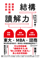 本書要介紹的,便是作者「河村有希繪」憑藉著考上東大,並且實際應用於MBA、諮商活動和教學;從她打從職場新人期,便不斷派上用場,使她備受上司肯定、一生受益的關鍵思考技巧——「結構讀解力」。