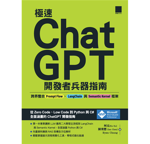 這本書,有技術、有實務,而且有為數不少的實作範例,由三位身為微軟MVP、在AI領域首屈一指的專家們共同著作,相信對需要深入了解生成式AI應用與相關技術的你,是絕佳的選擇。
