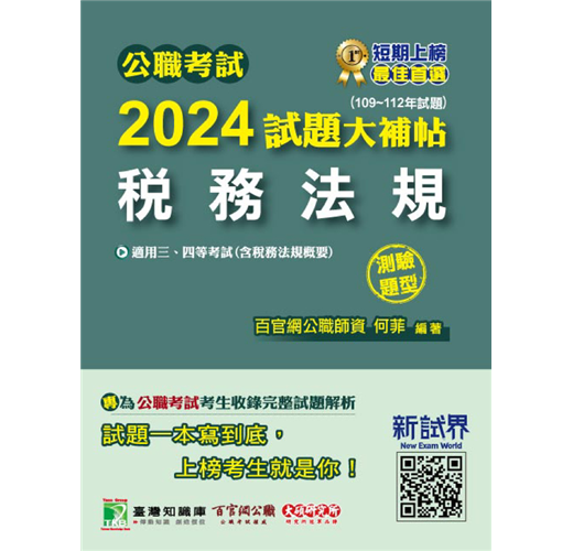 本書收錄公職考試2024試題大補帖【稅務法規(含稅務法規概要)】109~112年共六年的測驗試題詳解,幫助您一次準備全面應戰、熟悉題型順利上榜。