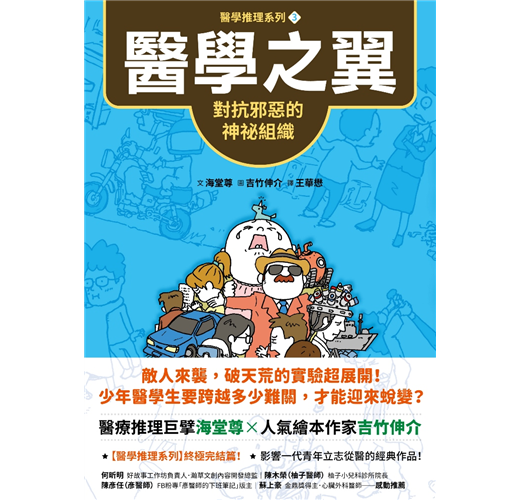 「少年越級打怪,通關消滅白色巨塔的魔王,讓我們明白,有勇氣的人,無關年紀,寬廣的道路總在眼前無限延伸。《醫學推理系列》提醒曾是少年的我們,長大了還記得要用同樣的勇氣去面對現實,過好每一天,不要放棄!勿忘初衷的勇氣之作。」──何昕明/好故事工作坊負責人.瀚草文創內容開發總監