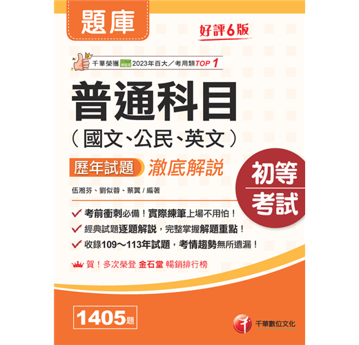 千華特聘各科專業名師群精心編寫這本「普通科目歷年試題澈底解說」,利於瞭解歷年考試的脈動、有效掌握未來出題的方向,準備起來也更事半功倍。完整的歷年試題總覽,收錄了109至113年間的初等考試、各類特考五等試題及詳盡解析。