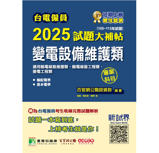 本書專為【台電新進僱用人員】考生出版的解題書,完整收錄台電僱員【變電設備維護類(輸電線路維護類、輸電線路/變電工程類)專業科目105~113年試題含解析。