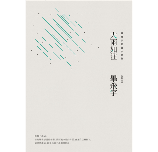 畢飛宇的小說運用語氣與速度,將故事緩而快地漸次推進,最後灑下天風雪雨,留下一地的驚嘆;其用字簡練,語帶機趣,靈犀閃現的瞬間,也為故事提振精神。書中收錄〈大雨如注〉獲第二屆郁達夫文學獎短篇小說獎、《人民文學》優秀短篇小說獎、百花文學獎的肯定。