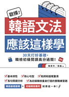 四週扎實訓練,從詞性、助詞、語尾到句型,還有最後的實戰演練。第一到六天講解重點觀念,打好韓語文法基礎,第七天了解初級韓檢閱讀題型及解題重點,一步一腳印建立完整韓語文法觀念,並且一邊活用新知為初級韓檢做準備。