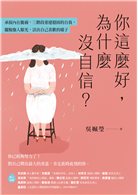 「如果你在親密關係中委曲求全,或是你常常會掉進否定自我的地獄,或許你內心正住著一個不容犯錯的孩子。如果你想脫離這種蓋牌的人生,就須要改寫你的自我詞彙。姵瑩這本《你這麼好,為什麼沒自信?》介紹的九軸向深度自我剖析,將幫助你從別人的眼光中脫離,早點回歸到你的真實自我。