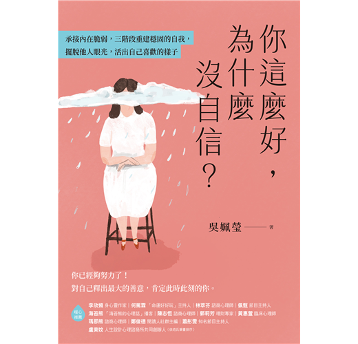 在華人世界成長的我們,深陷那些看似關心的評價,帶著這些創傷長大,再也不相信自己有表現好的一天。吳姵瑩心理師用引人入勝的故事,深入淺出帶我們走入內心世界,一步步重建被摧毀的自信,長出全新的、有信心的自己。」