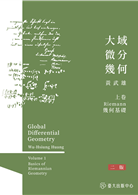 《大域微分幾何》全書共三卷。內容主要對象是彎曲的空間,上卷大體是作者多次在臺大數學研究所授課的講稿,以此為基礎,展開中、下両卷,進入大域幾何研究的專業。