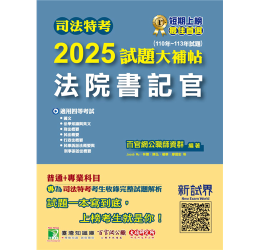 全新【大碩教育2025司法特考試題大補帖】,一本專為考生打造的類科試題書,不論共同或專業科目,備考應戰無煩惱!