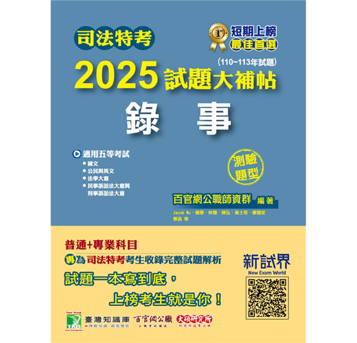 全新【大碩教育2025司法特考試題大補帖】,一本專為考生打造的類科試題書,不論共同或專業科目,備考應戰無煩惱!