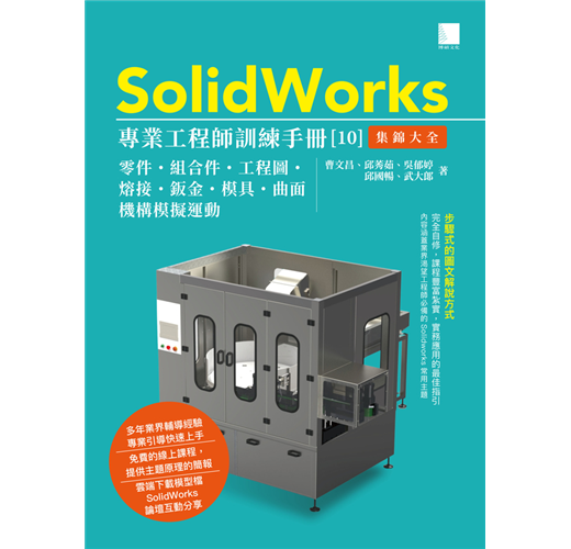 本書內容豐富,一次擁有八大精華主題:零件、組合件、工程圖、熔接、鈑金、模具、曲面、機構模擬運動,並經多年驗證,完全適合初級到中級的學習用書。AI 時代來臨,未來SolidWorks 也將走向AI 模組訓練,有了基本功,屆時即可直接往訓練模組學習精進,機會是留給準備好的人。