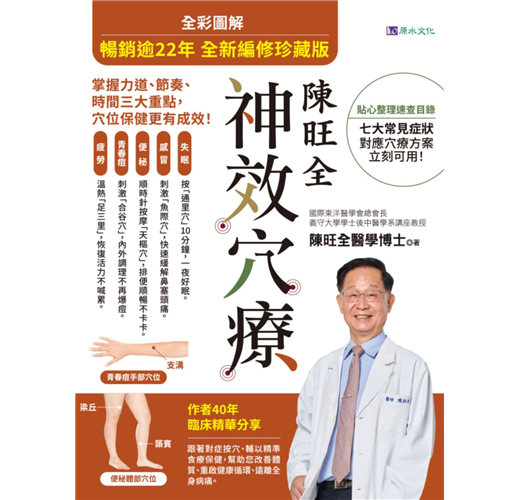 相關著作:《名中醫傳承一味中藥對症良方【暢銷修訂版】》《穀物蔬果養生宜忌【暢銷修訂版】》《陳旺全1001種對症養生食療》《穀物蔬果養生宜忌》《圖解免疫與自然治癒力-遠離疾病、回復健康的神奇生命力[修訂版]》《名中醫傳承一味中藥祛病良方》《全彩圖解 陳旺全神效穴療 全新修訂版》