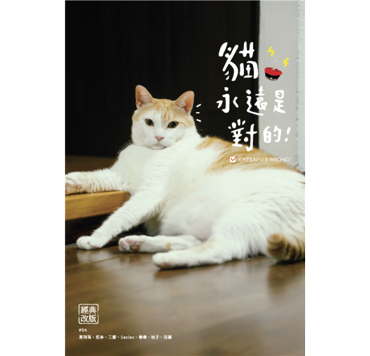 咦?第四本書了?沒想到我們還會出第四本吧!哈哈哈,其實就連我自己也覺得很意外,但每一年與貓咪相處的過程,都充滿著風險⋯⋯喔、不是,是充滿著驚喜,哈哈哈,所以就會有很多值得分享給大家笑一場或學習的事情。