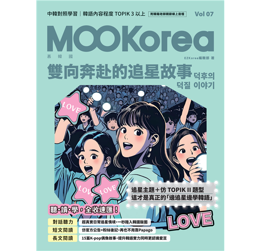 *本期適合韓語程度TOPIK 3級以上讀者,透過閱讀文章、聆聽音檔學習韓語,並了解K-pop偶像和粉絲互相激勵成長的點點滴滴。