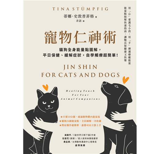 「我強力推薦蒂娜.史敦普菲格的《寵物仁神術》。這本書讀來輕鬆有趣,手法簡單易學。就跟用在人類身上一樣,你也可以啟動貓狗的自癒能力。從生理問題到心理問題,書中皆有詳細說明,搭配圖片輔助,使本書容易理解,因此適合初學者,也適合進階讀者。」