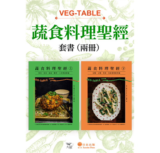 本套書組合:《蔬食料理聖經(上):葉菜、花菜、蔥蒜、嫩莖、玉米與番薯篇》、《蔬食料理聖經(下):瓜類、豆類、果實、馬鈴薯與根莖篇》共二冊