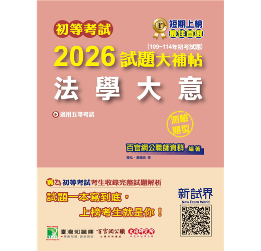 本書收錄初等考試【法學大意】109~114年的測驗試題詳解,幫助您一次準備全面應戰、熟悉題型順利上榜。