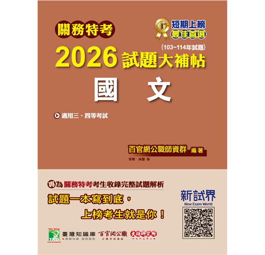 每一本書皆收錄該科目的歷屆考題及詳解,讓考生不需費力地上網爬文找歷屆試題,只要一本試題大補帖在手,便能立即實戰演練,並且有效整理歷屆考試重點,作為考前衝刺複習書。