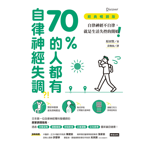 如果你懷疑自己有自律神經失調,或者正在努力尋找改善方法,那麼這本《70%的人都有自律神經失調?!》會是非常實用的一本書。本書由日本自律神經調理師原田賢所著,透過「姿勢、運動、飲食、睡眠、思考」五大生活面向,教你用簡單方式穩定身體節奏。書中列出常見症狀,並搭配插圖與實作方法,從站立姿勢、伸展操、走路姿勢、喝水、飲食重點、休息安排、日照、就寢前的一小時,到觀察並調整思考習慣,文字說明簡單清楚,看完以後就能夠跟著做,沒有艱深理論,也不用昂貴工具,就能開始調整體質,改善生活品質。