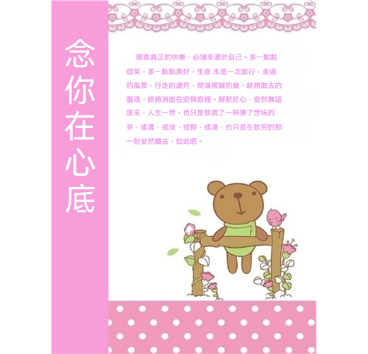 一種幸福藏在心靈深處的深處,只在屬於心靈的時間才在心底綻放小小的快樂。日月如梭的交替中有多少時間給了自己的心靈?在屬於心靈的時間你又會想些什麼? 深深的夜裏,品一杯漸涼的清茶,卻依然嫋繞著一分隱隱的牽掛;一分朦朧的思念;一分淺淡的期盼。是源自心靈與心靈的對白嗎?讓我久久的再也不能,不能歸於寂寞,趨於平靜。於是,我便無暇顧及你是這樣的蒼老或年輕,醜陋或美麗,咫尺或天涯了;於是才會有夜夜相似的失眠;才會在每一個俱寂的深夜期盼著,並為有期盼而幸福著。