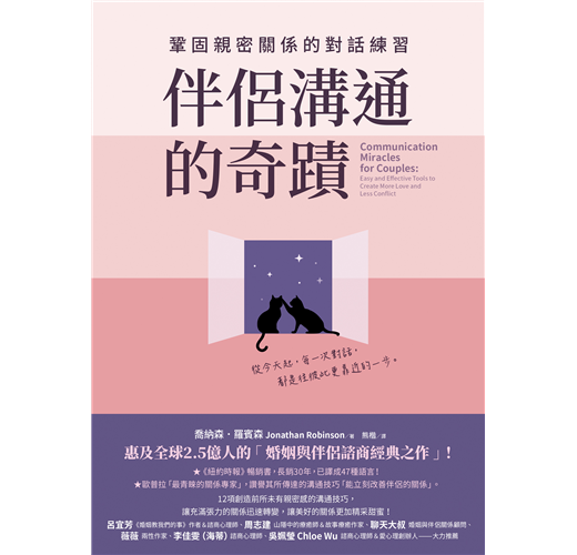 作者喬納森・羅賓森,是美國知名心理治療師與《歐普拉脫口秀》常客,擁有三十多年專業經驗,能將深奧的心理學轉化為人人可實踐的日常工具。透過本書,他已幫助超過百萬對伴侶修補裂痕、找回連結。