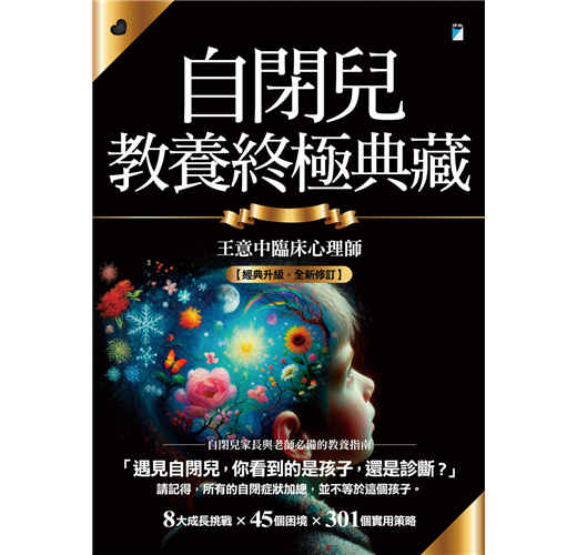 本書結合王意中臨床心理師多年來在早療、校園與臨床實務上的經驗,針對自閉兒常見的8大挑戰:刻板、侷限與重複行為;興趣與專注;語言與溝通;情境調適;親師溝通與學習;班級經營與融合;遊戲與人際關係;同理與接納,拋出45個教養困境,並提供301個具體解方。