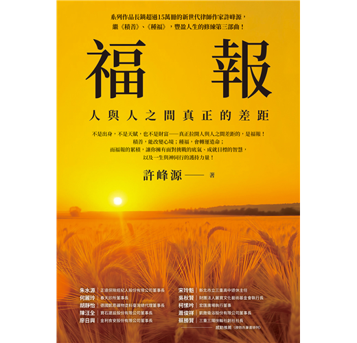 本書邀你一起透過積善、種福、累積福報,讓內心充滿向善力量的太陽逐漸閃耀,照破自己與無數人生命的黑暗,一起見證生命無限的恩典奇蹟。