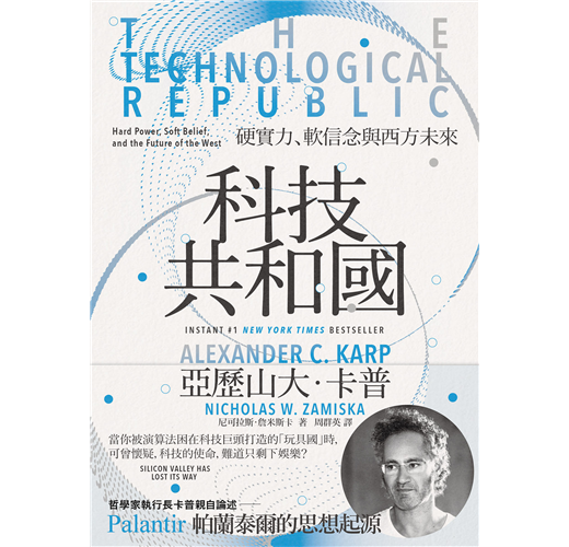 「在當今錯綜複雜的地緣政治、科技和經濟環境中,作者在《技術共和國》一書不僅論述出眾又勇於直言,有助於我們理解美國及盟友未來繁榮的重要問題。這本書時而發人深省,時而充滿洞見,卡普在這個快速變化的世界展現出來的韌性、愛國精神和深厚經驗,為所有人帶來值得借鏡的教訓和深思的觀點。」——傑米.戴蒙(Jamie Dimon)|摩根大通董事長兼執行長