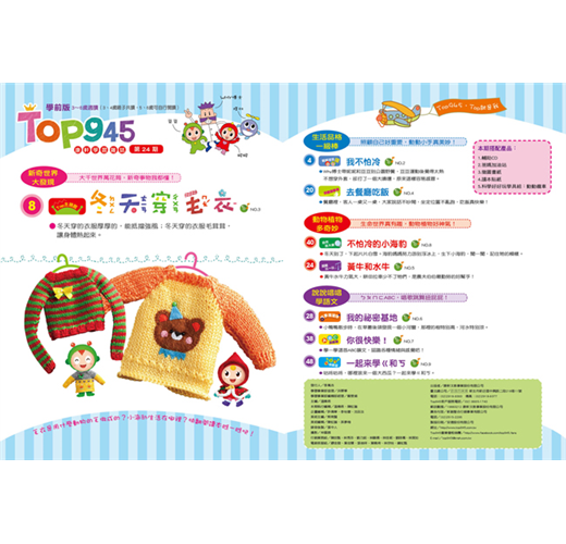 《TOP945康軒學習雜誌》藉由活潑有趣的故事式主題,橫向縱向的延伸學校所學的課程,並加深加廣生活周遭的知識,讓孩子更容易吸收知識,是一本綜合性兒童學習雜誌。