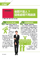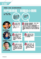隨著八年級加入,台灣的職場已經正式進入「四代同堂」。當組成結構更多元、更異質,人際關係的複雜度也更高。這期雜誌中,我們羅列出360度上下左右各種最常見的人際難題,聰明的你只要藉此打通任督二脈,相信舉一反三不是問題,貴人現身、小人退散,一定會跟著水到渠成(第54頁起)。