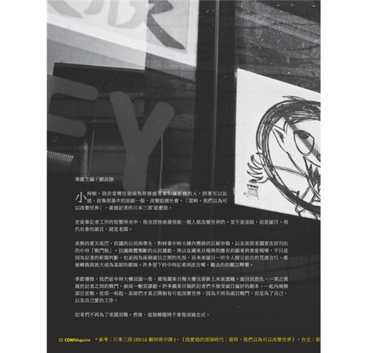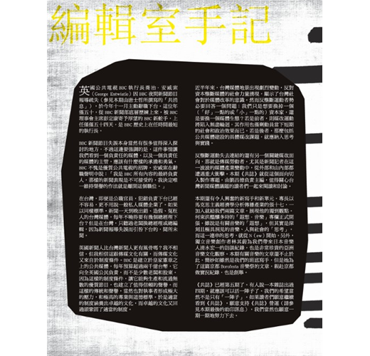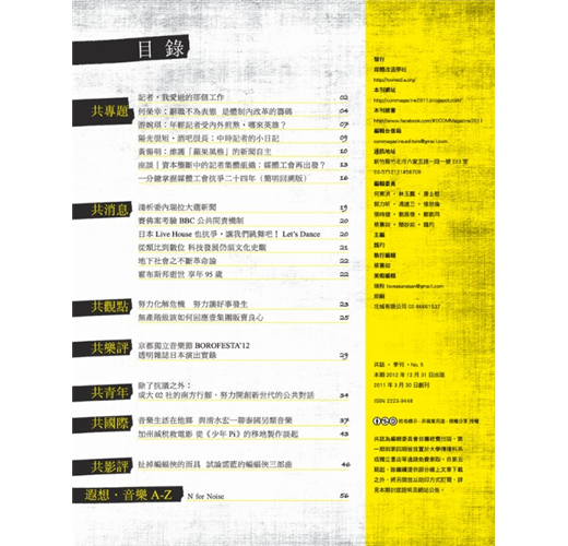 創設於2011年,是一本以媒體/文化批判為主的獨立評論雜誌,關懷在地公共議題及文化活動,提供深度分析社會脈動的評論及報導,希望提供讀者不同於主流的觀點。
